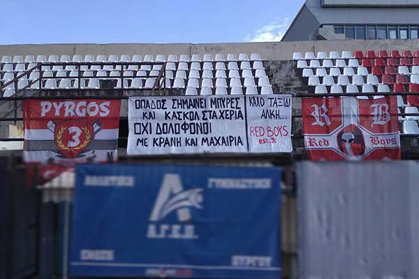 Πύργος: Πανό για τον δολοφονημένο Άλκη στο Δημοτικό Στάδιο από τους Red Boys [PHOTOS]