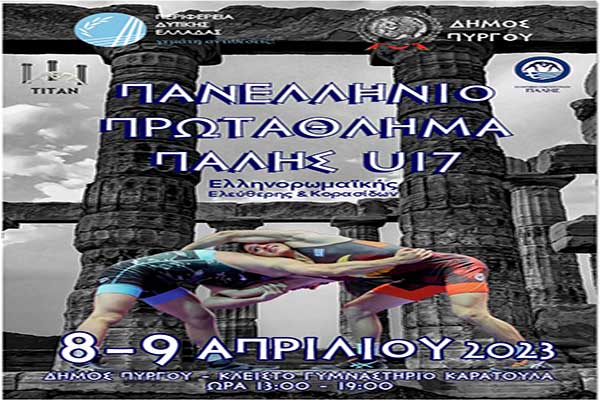 Πανελλήνιο Πρωτάθλημα Πάλης U17 στις 7-9/04/2023 στο κλειστό Γυμναστήριο Καράτουλα