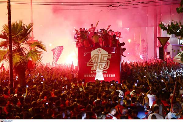 Η φιέστα στο «Γ. Καραϊσκάκης» ήταν φαντασμαγορική, αλλά οι πανηγυρισμοί του Ολυμπιακού για την κατάκτηση του 45ου πρωταθλήματος δεν σταμάτησαν εκεί.