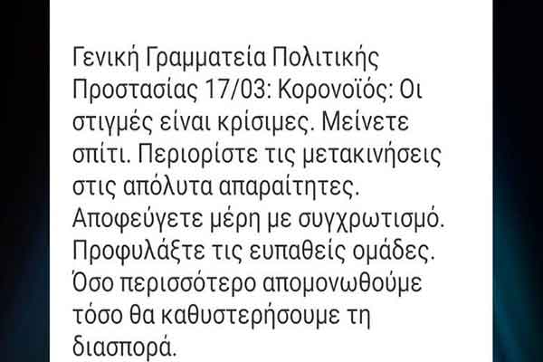 Κορωνοϊός: «Οι στιγμές είναι κρίσιμες, μείνετε σπίτι» - Νέο μήνυμα από την ΓΓΠΠ