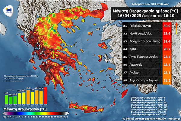 Στους 30 βαθμούς έφτασε η θερμοκρασία τη Μεγάλη Τετάρτη - 29,4 °C στο Φράγμα Πηνειού
