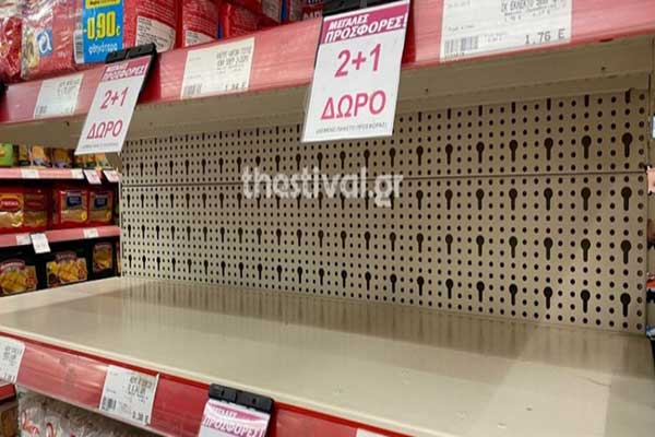 Κορωνοϊός: Οι πολίτες αδειάζουν τα ράφια των σούπερ μάρκετ στη Θεσσαλονίκη [εικόνες]