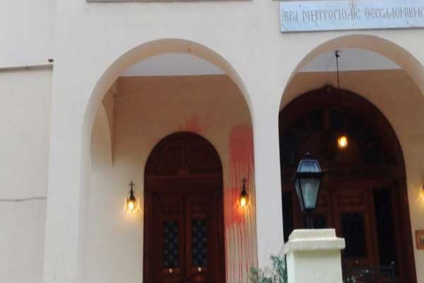 Θεσσαλονίκη: Πέταξαν τρικάκια και κόκκινες μπογιές στη Μητρόπολη -«Ενάντια στον σκοταδισμό»