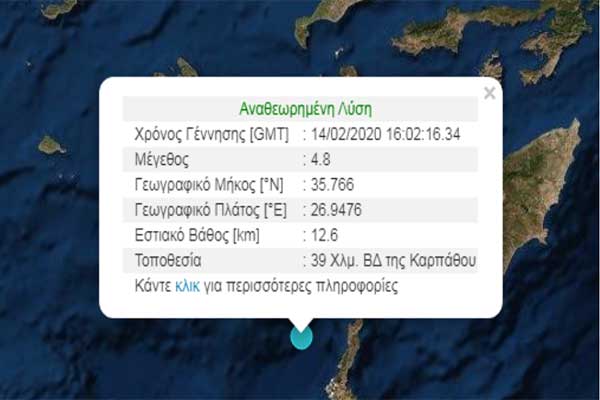 Σεισμός 4,8 Ρίχτερ ανοιχτά της Καρπάθου - «Ταρακούνησε» και την Κρήτη