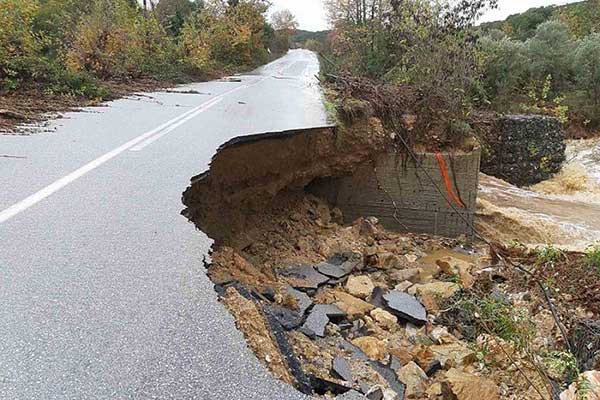 Υποχώρησε το οδόστρωμα σε περιοχή της Χαλκιδικής λόγω της κακοκαιρίας