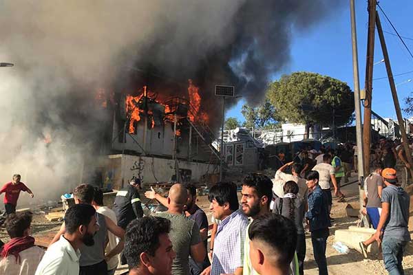 Φωτιά και επεισόδια στον προσφυγικό καταυλισμό της Μόριας