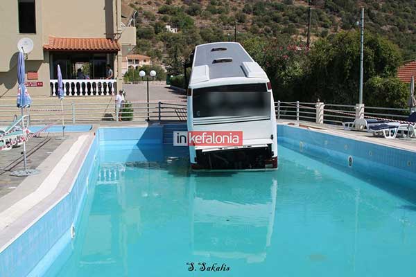Λεωφορείο έκανε βουτιά σε πισίνα ξενοδοχείου στην Κεφαλονιά
