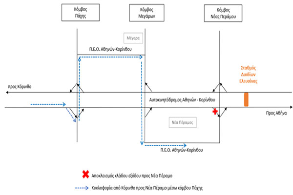 Ολυμπία Οδός: Ολιγόωρος Αποκλεισμός της εξόδου του Κόμβου Νέας Περάμου στην κατεύθυνση προς Αθήνα