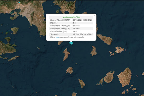 Σεισμική δόνηση 4,3 ρίχτερ ανοικτά της Κύθνου - Αισθητός στην Αττική