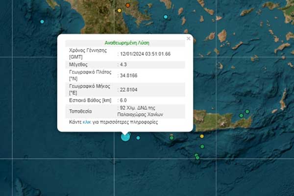 Σεισμός 4,3 Ρίχτερ στα ανοιχτά της Κρήτης