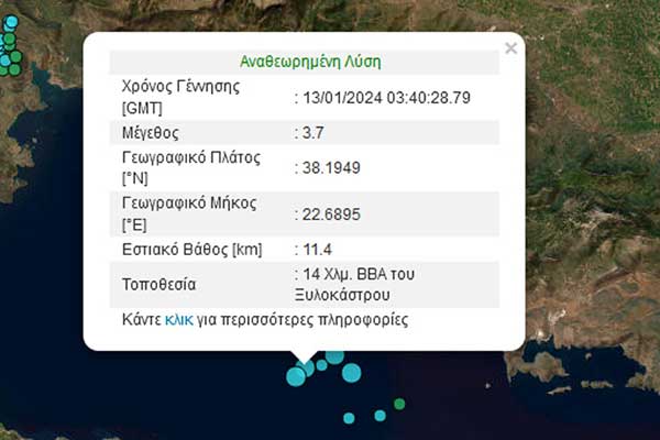 Σεισμός 3,7 Ρίχτερ στον Κορινθιακό Κόλπο
