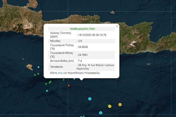 Σεισμός 3,9 Ρίχτερ νότια της Κρήτης - Στην θάλασσσα το επίκεντρο