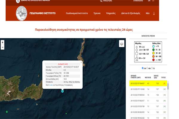 Συνεχείς σεισμικές δονήσεις μεταξύ Κρήτης και Κάσου μεγέθους 4,1 και 3 Ρίχτερ