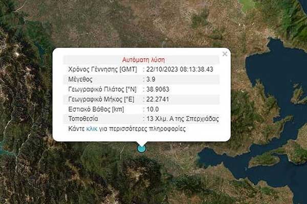 Σεισμός μεγέθους 3,9 Ρίχτερ στη Σπερχιάδα Φθιώτιδας