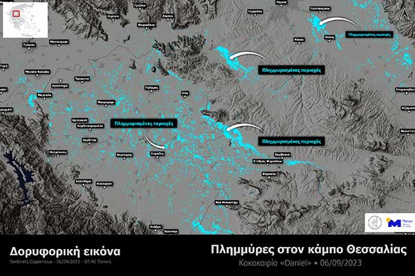 Κακοκαιρία «Daniel»: Πλημμυρισμένο μεγάλο μέρος του κάμπου της Θεσσαλίας - Εικόνα από τον δορυφόρο Sentinel-1