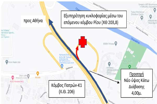 Ολυμπία Οδός: Ολιγόωρος αποκλεισμός του κλάδου εξόδου του Κόμβου Κ1 της Περιμετρικής Πατρών στα Μποζαΐτικα