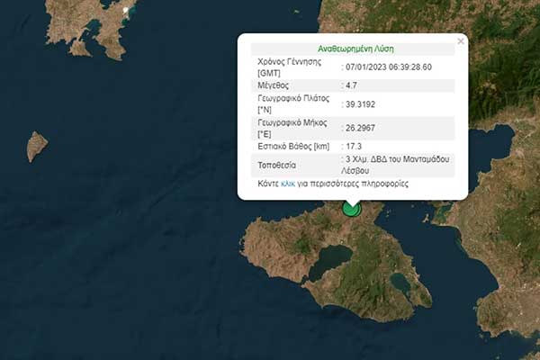 Συνεχίζει να «κουνιέται» η Λέσβος - Νέα ισχυρή δόνηση 4,7 Ρίχτερ το πρωί