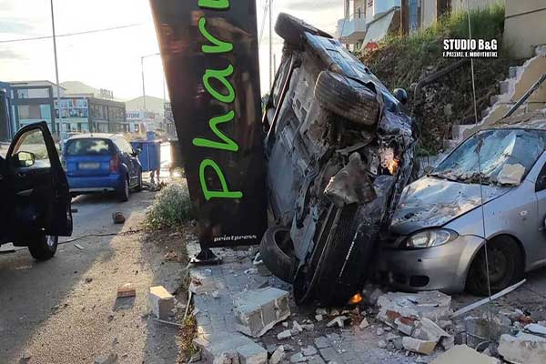 Ναύπλιο: Σφοδρό τροχαίο - I.X. γκρέμισε μάντρα και έπεσε πάνω σε σταθμευμένα οχήματα