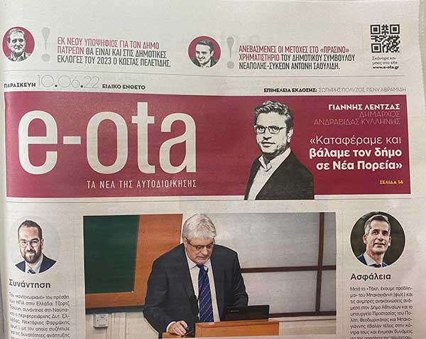 Γ.Λέντζας: «Καταφέραμε να βάλουμε τον Δήμο Ανδραβίδας-Κυλλήνης σε Νέα Πορεία!»