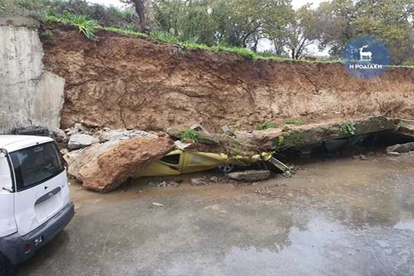 Τεράστιος τοίχος στη Ρόδο συνέθλιψε δύο αυτοκίνητα -Απίστευτες εικόνες
