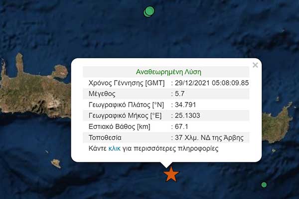 Σεισμός 5,7R ταρακούνησε την Κρήτη – Τι εκτιμούν οι σεισμολόγοι Λέκκας και Τσελέντης