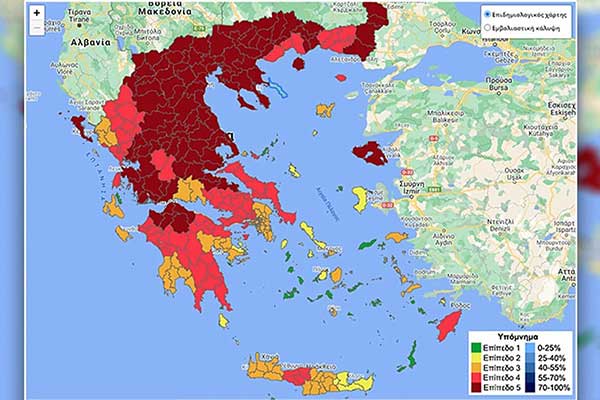 Κορωνοϊός-Επιδημιολογικός χάρτης: Στο «βαθύ κόκκινο» 27 περιοχές