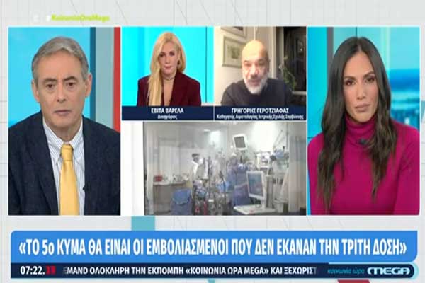 Γεροτζιάφας: «Το 5ο κύμα θα αφορά τους εμβολιασμένους που δεν έκαναν την τρίτη δόση»