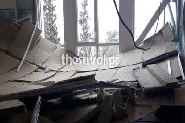Θεσσαλονίκη: Κατέρρευσε ψευδοροφή σε δημοτικό σχολείο -Από τύχη γλίτωσαν οι μαθητές [βίντεο]