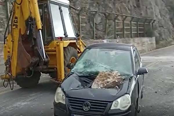 Δείτε βίντεο: «Ουρανοκατέβατος» βράχος έπεσε σε όχημα εν κινήσει στην Αράχωβα