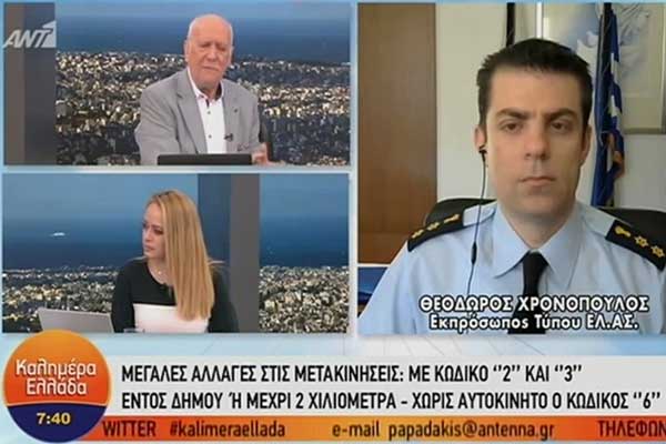 Εκπρόσωπος Τύπου ΕΛ.ΑΣ. για νέα μέτρα: Δεν ισχύει το όριο των 2 χιλιομέτρων μέσα στον δήμο