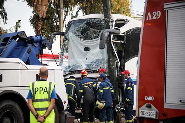 Τροχαίο στον Πειραιά: Πούλμαν «καρφώθηκε» πάνω σε κολόνα στην Ακτή Μιαούλη