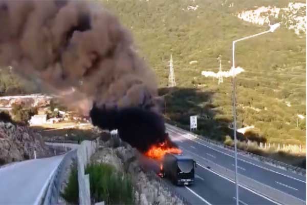 Ιόνια Οδός: Στις φλόγες λεωφορείο που εκτελούσε το δρομολόγιο Ιωάννινα - Αθήνα
