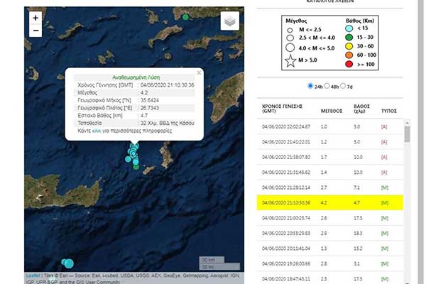 Σεισμός 4,2 Ρίχτερ ταρακούνησε Κάσο, Κρήτη, Κάρπαθο