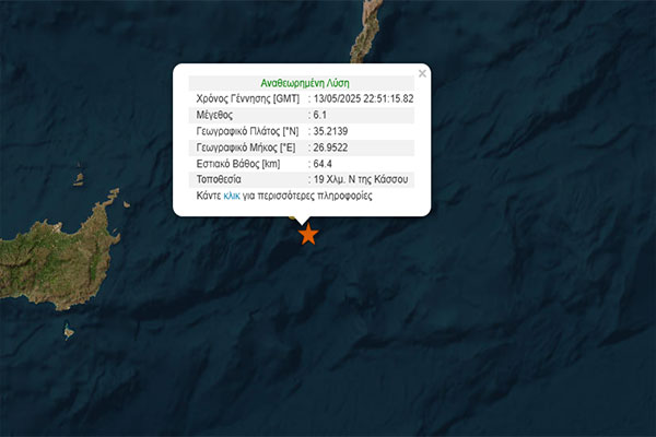 Καθησυχαστικοί οι επιστήμονες: Τα 6,1 Ρίχτερ στα ανοιχτά της Κάσου δε συνδέονται με τους σεισμούς σε Σαντορίνη και Τουρκία