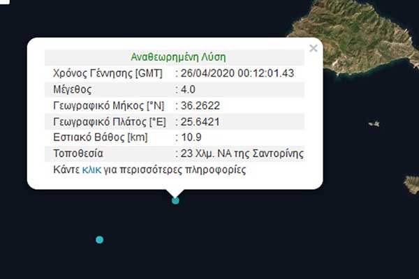 Σεισμική δόνηση 4R νοτιοανατολικά της Σαντορίνης