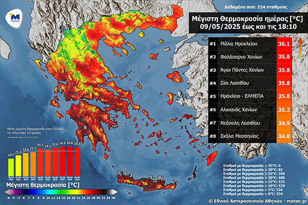 Στους 36.1 °C η μέγιστη θερμοκρασία την Παρασκευή 9 Μαΐου