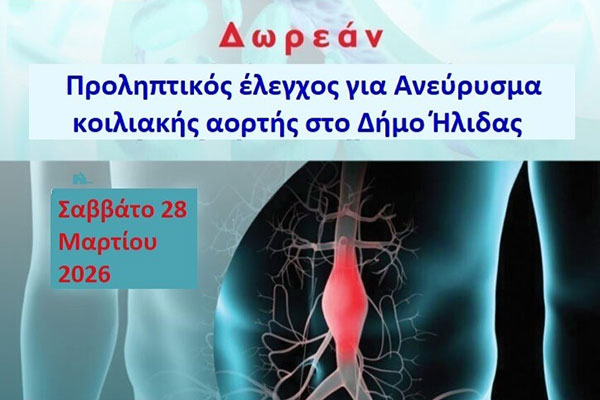 Δήμος Ήλιδας: Δωρεάν Προληπτικός Έλεγχος για το Ανεύρυσμα Κοιλιακής Αορτής από το ΚΕΠ Υγείας