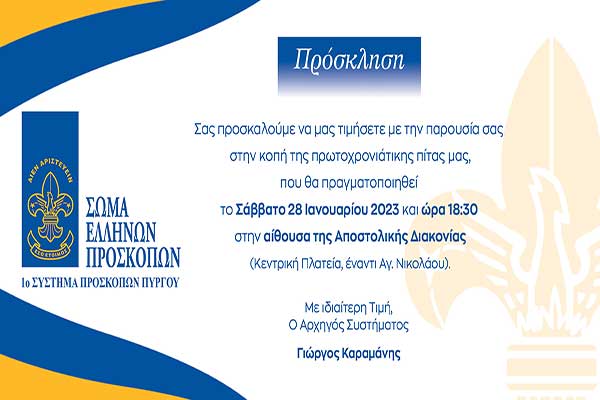 Πρόσκοποι Πύργου: Το Σάββατο 28/1 η κοπή της Πρωτοχρονιάτικης πίτας