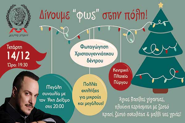 Απόψε ανάβουν τα φώτα του χριστουγεννιάτικου δέντρου στον Πύργο - Μεγάλη συναυλία με τον Άκη Δείξιμο