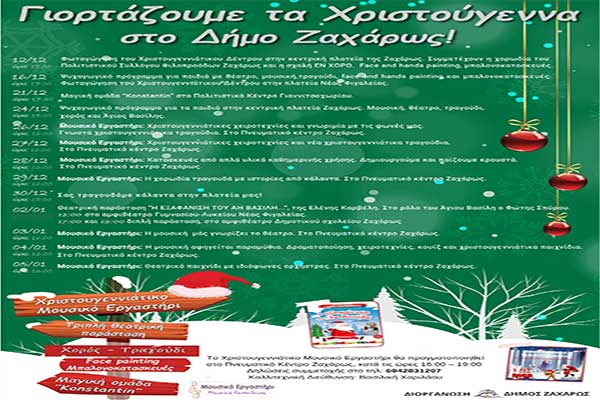Δήμος Ζαχάρως: Το Πρόγραμμα των Χριστουγεννιάτικων Εκδηλώσεων