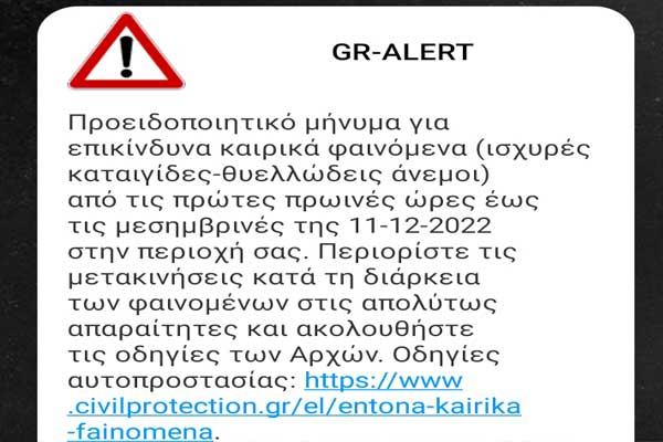 Ηλεία-Κακοκαιρία "Gaia": Μήνυμα του 112 για επικίνδυνα καιρικά φαινόμενα