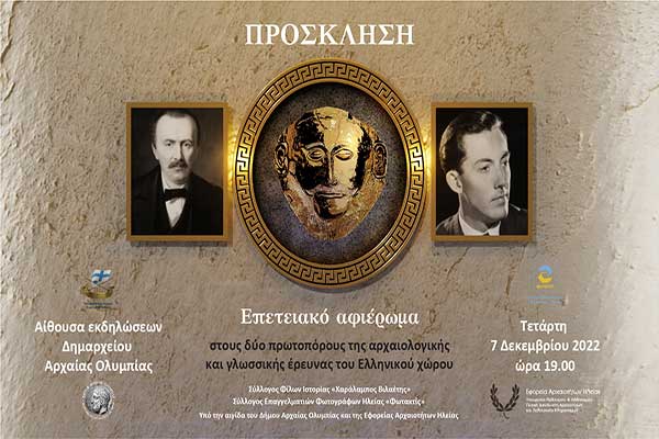 «ΦΩΤΑΚΤΙΣ»-Σύλλογος Φίλων Ιστορίας «Χαράλαμπος Βιλαέτης»: Αφιέρωμα στους Σλήμαν και Βέντρις στην Ολυμπία