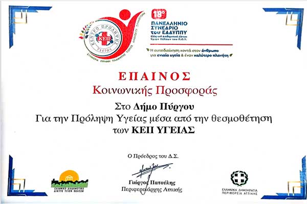 Έπαινος στον Δήμο Πύργου για τη λειτουργία των ΚΕΠ Υγείας