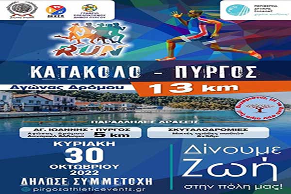 Δήμος Πύργου: «Σας προσκαλούμε όλους να γίνετε μέρος των αθλητικών εκδηλώσεων του «1ο RUN ΚΑΤΑΚΟΛΟ – ΠΥΡΓΟΣ (13 χλμ.) στις 30 Οκτωβρίου»