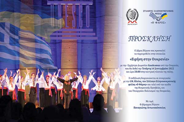 Δήμος Πύργου: Συναυλία για την «Ειρήνη στην Ουκρανία» με την παγκοσμίου φήμης Χορωδία δωματίου “Gaudeamus” (14/9)