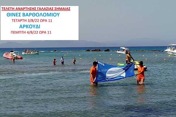 Δήμος Πηνειού: Τελετή ανάρτησης Γαλάζια σημαίας σε Θίνες και Αρκούδι