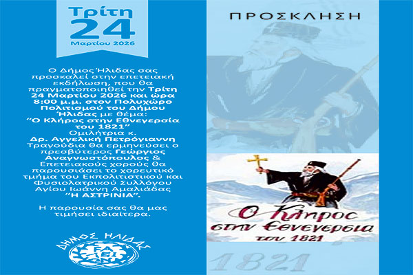 Δήμος Ήλιδας: Πρόγραμμα και Πρόσκληση Επετειακών Εκδηλώσεων 25ης Μαρτίου 2026