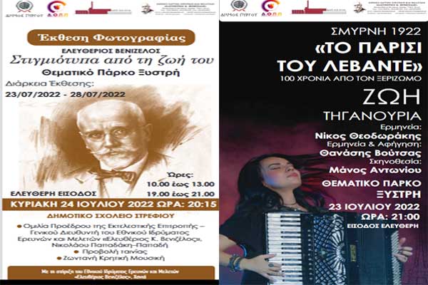Δήμος Πύργου: Εκδηλώσεις εορτασμού μνήμης των 100 ετών από την Μικρασιατική καταστροφή στο Θεματικό Πάρκο Ξυστρή