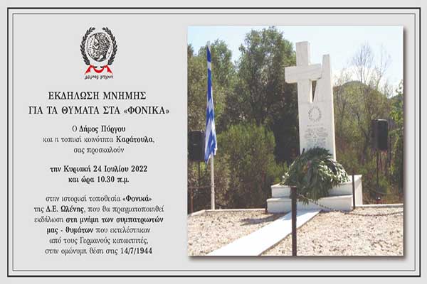 Δήμος Πύργου: Την Κυριακή 24/7 η ετήσια τελετή - προσκύνημα στα Φονικά