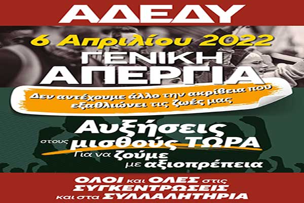ΕΔΟΠ ΔΕΗ Ηλείας: "Την Τετάρτη 6 Απρίλη απεργούμε όλοι"